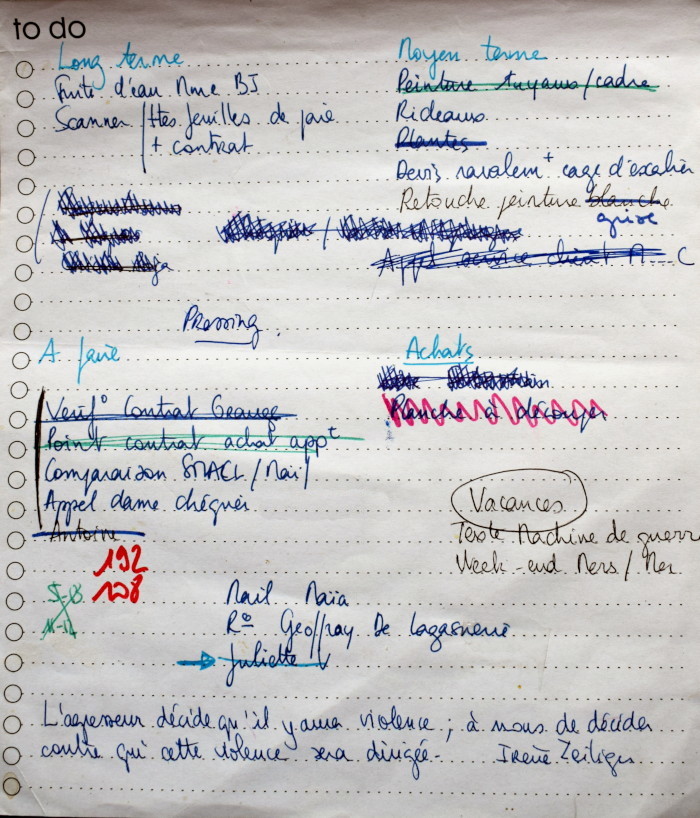 Ces derniers temps, je travaille sur les lieux de soin en psychiatrie. On demande aux personnes psychotiques de faire un projet, et c’est, soi-disant, elles qui décident. Mais à la fin les projets sont tous les mêmes : un emploi, un appartement supervisé. Pourquoi ? Parce que le projet est l’objet d’une négociation et qu’il est encadré par les soignant·es. Il est borné entre deux formes inacceptables : le projet fou – « Je suis Michael Jackson et je voudrais monter une ferme en Afrique. » – et le statu quo. Quelqu’un·e qui dirait : « Moi, je veux me faire livrer des pizzas, jouer aux jeux vidéo toute la journée, ne voir personne, qu’on me laisse tranquille », serait inaudible. Ce serait ça, peut-être, la grève du travail sur soi.